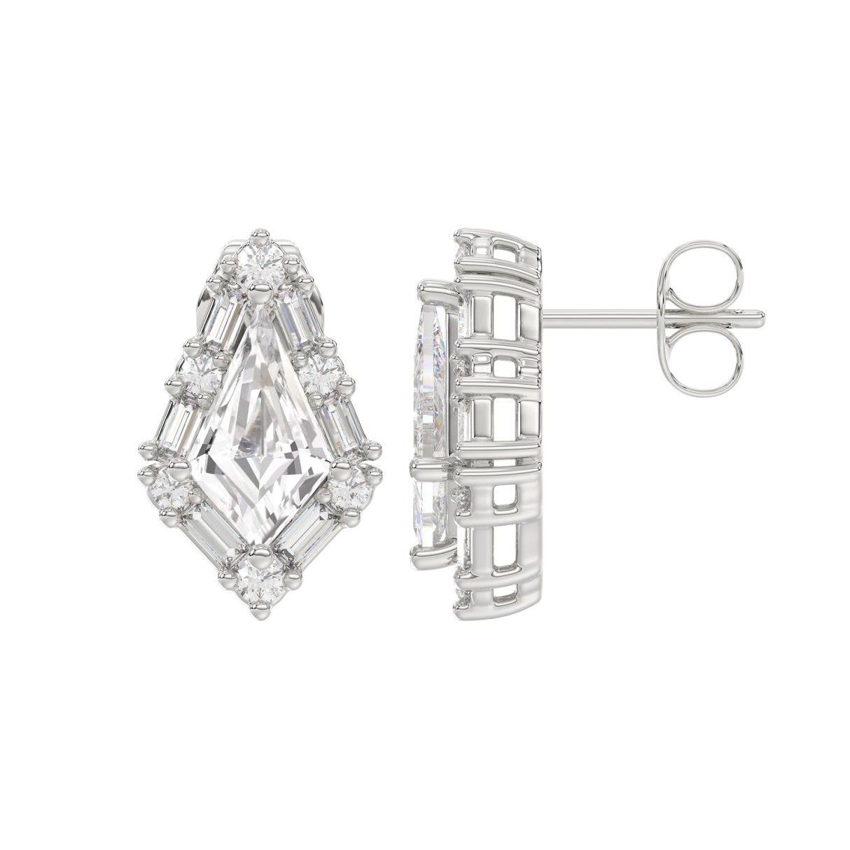 14K WHITE GOLD 1 1/4CT ROUND/BAGUETTE/KITE DIAMOND LADIES EARRINGS