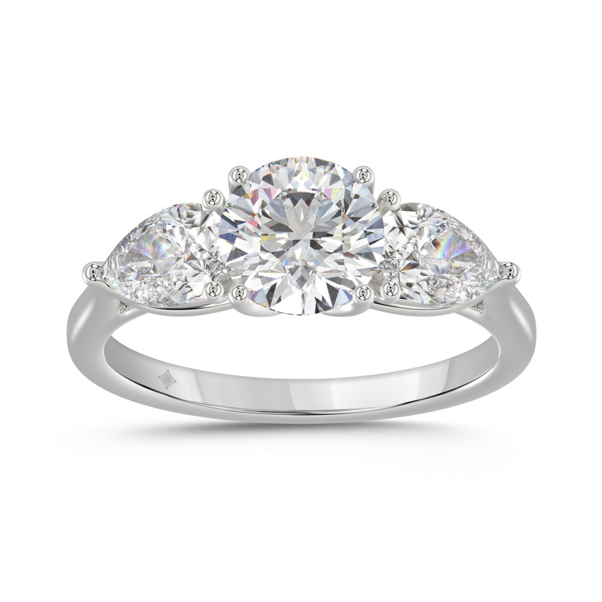 14K WHITE GOLD 2 1/3CT ROUND/PEAR DIAMOND LADIES RING (CENTER STONE ROUND DIAMOND 1 1/4CT)