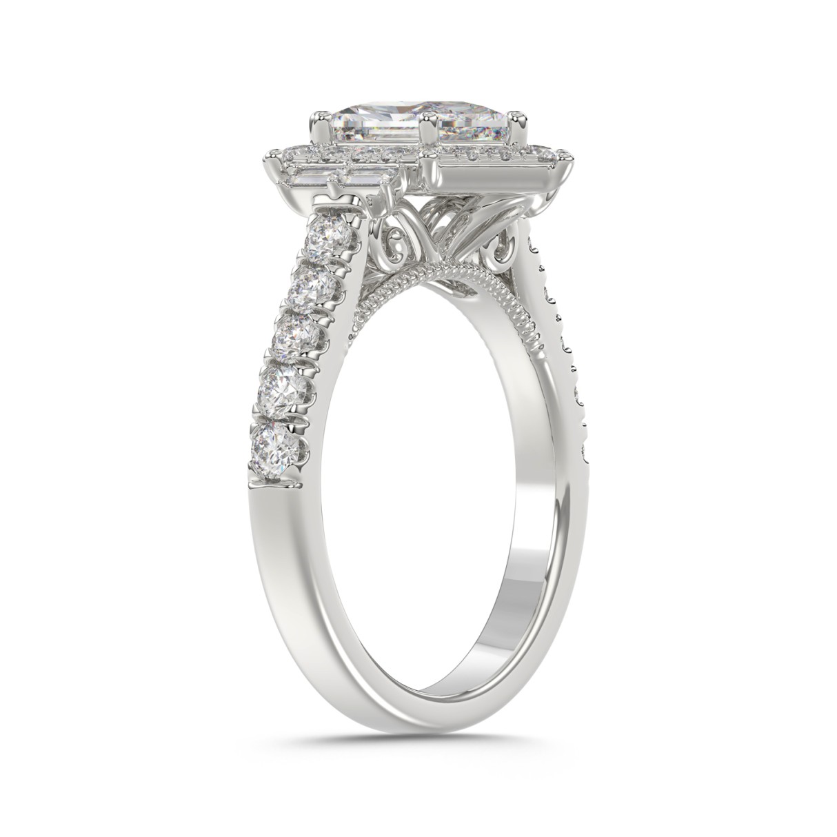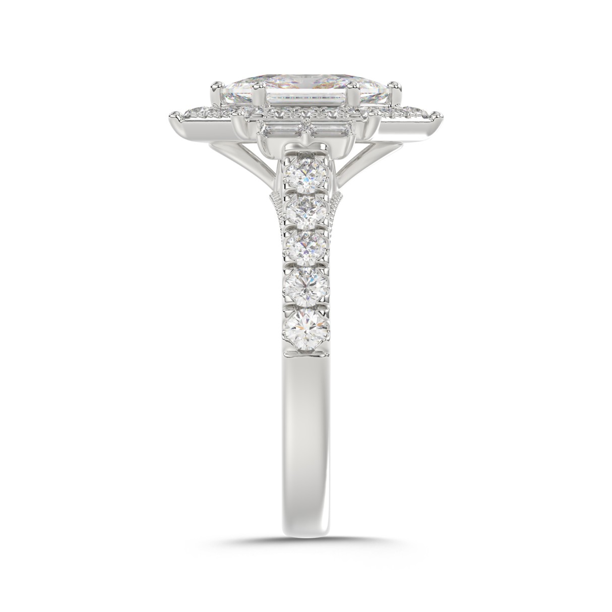 14K WHITE GOLD 2 1/4CT ROUND/BAGUETTE/HEXAGON DIAMOND LADIES RING