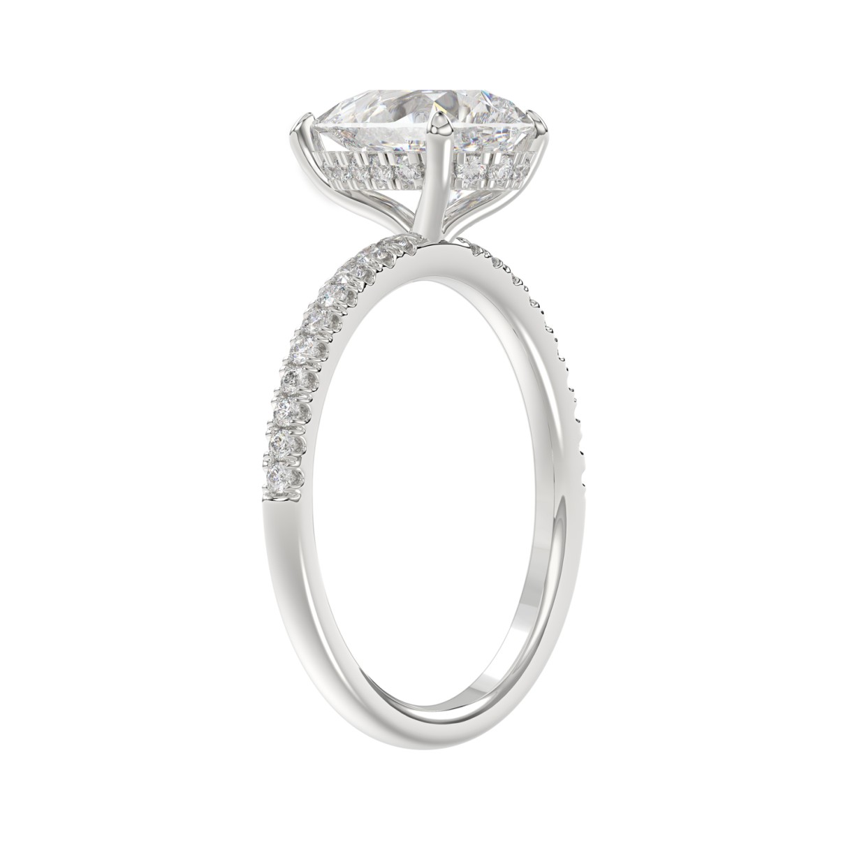 14K WHITE GOLD 2 3/4CT ROUND/PEAR DIAMOND LADIES RING (CENTER STONE PEAR DIAMOND 2CT)