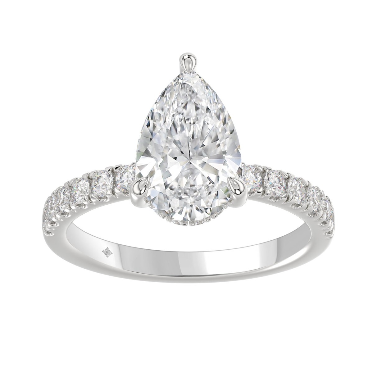 14K WHITE GOLD 3 1/2CT ROUND/PEAR DIAMOND LADIES RING (CENTER STONE PEAR DIAMOND 3CT)
