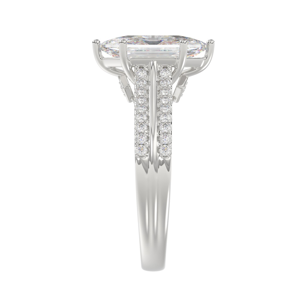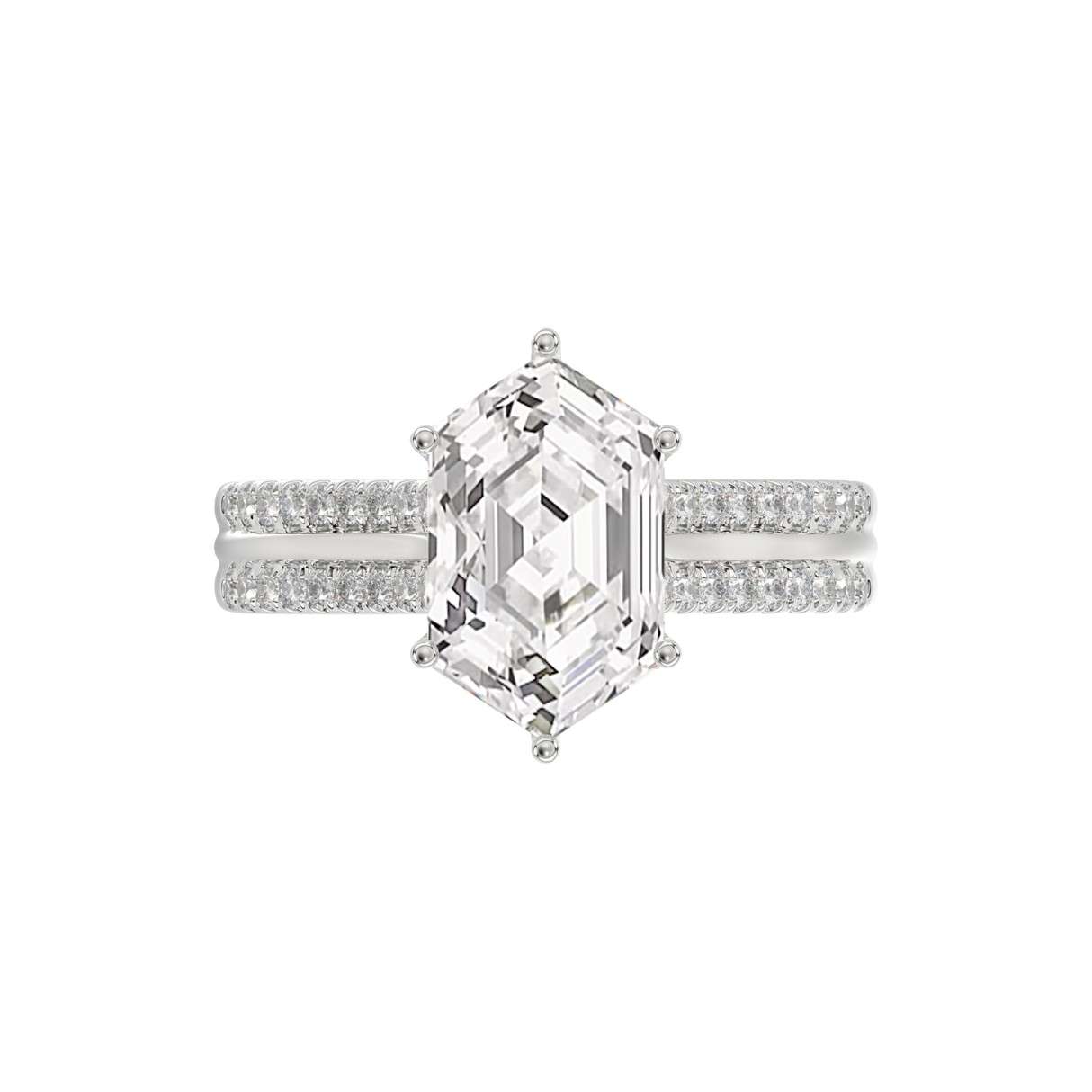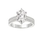 14K WHITE GOLD 3 1/4CT ROUND/HEXAGON DIAMOND LADIES RING (CENTER STONE HEXAGON STEP CUT DIAMOND 3CT