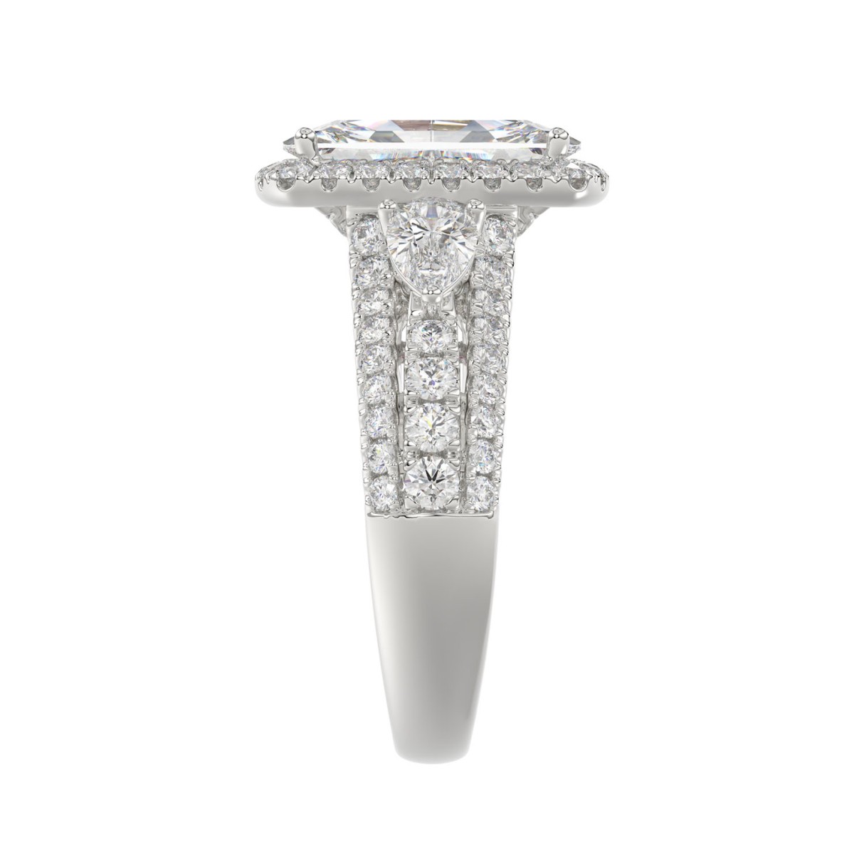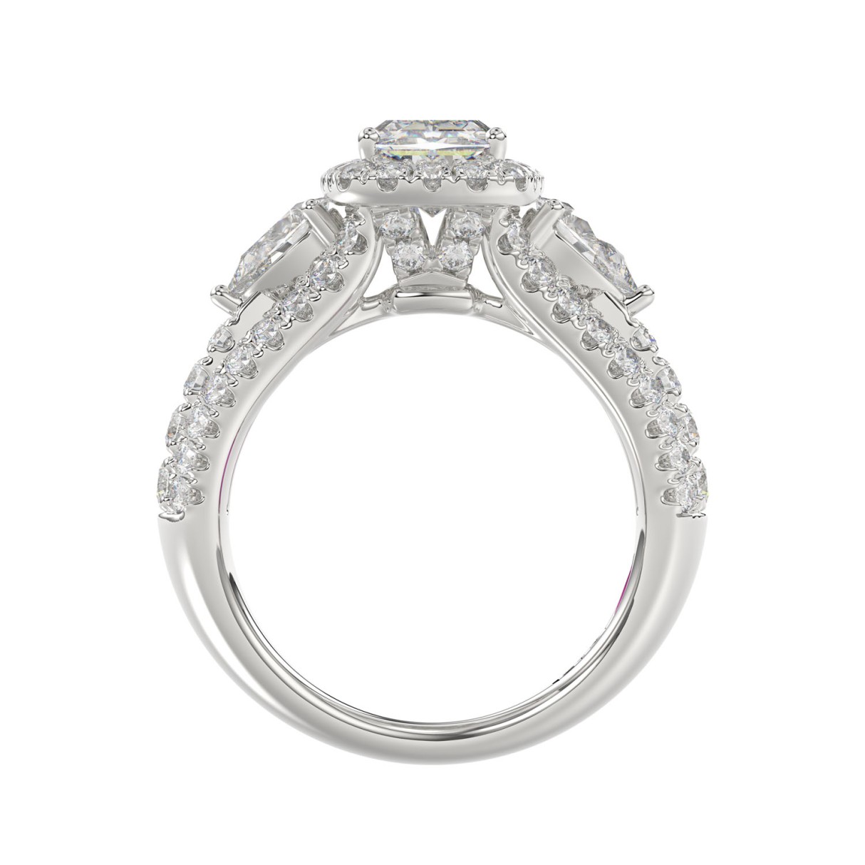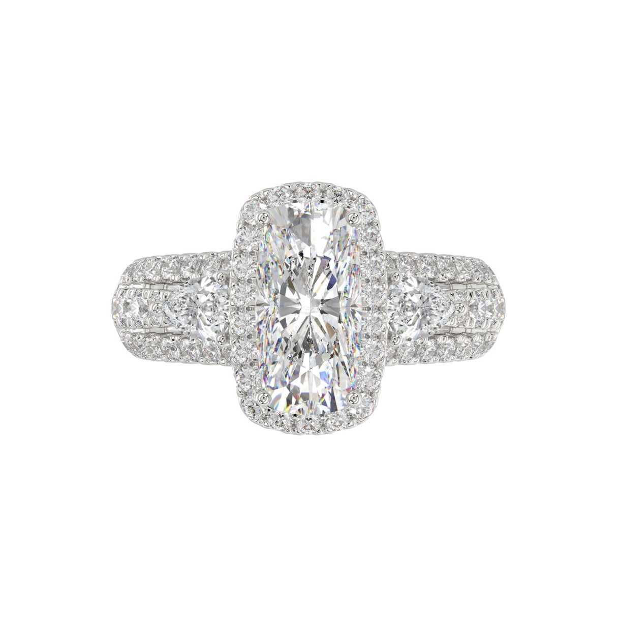 21K PLATINUM LADIES RING 3 1/2CT ROUND/PEAR/CUSHION/BAGUETTE DIAMOND (CENTER STONE CUSHION DIAMOND 2CT)