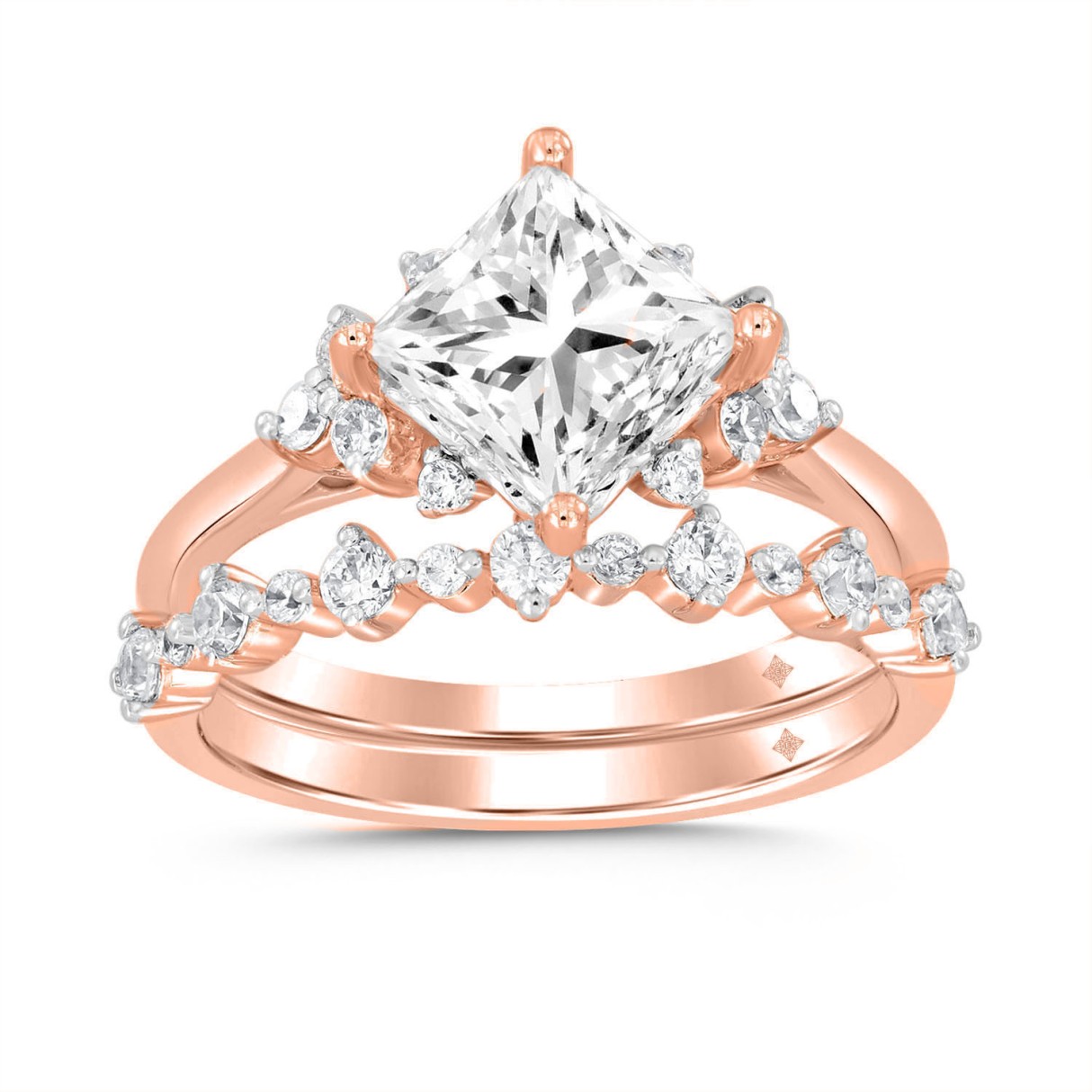 LADIES BRIDAL SET 2 1/2CT ROUND DIAMOND 14K ROSE GOLD (CENTER STONE PRINCESS DIAMOND 2CT)