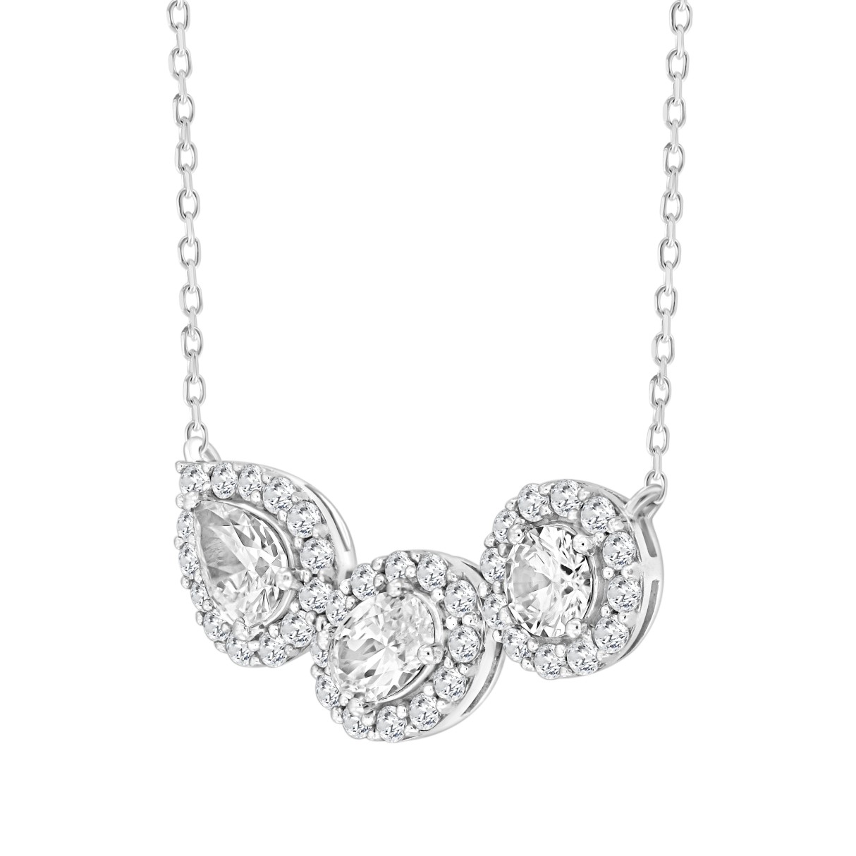 LADIES NECKLACE 2 1/2CT ROUND/PEAR/OVAL DIAMOND 14K WHITE GOLD (CENTER STONE ROUND/PEAR/OVAL DIAMOND 1/2CT 3/4CT 5/8CT )