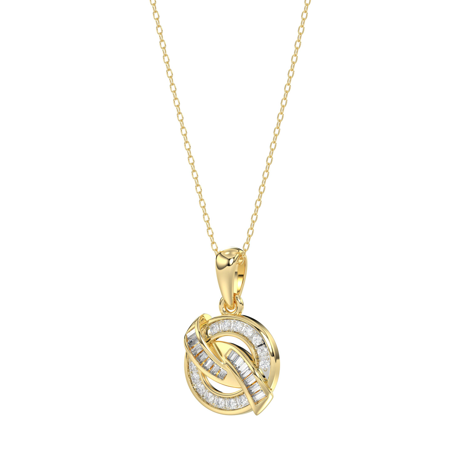LADIES PENDANT 0.15CT ROUND/BAGUETTE DIAMOND 10K YELLOW GOLD