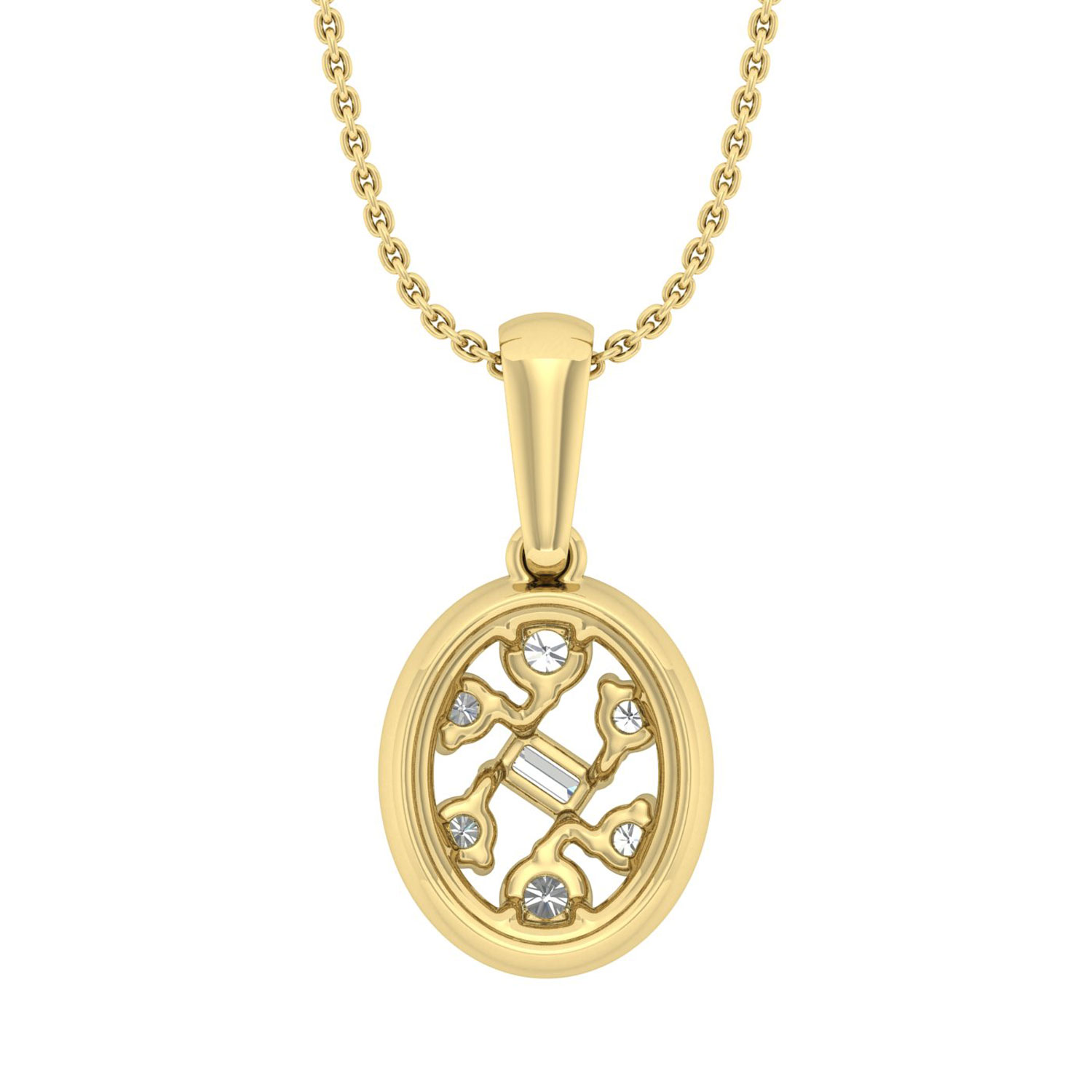 LADIES PENDANT WITH CHAIN 0.20CT ROUND/BAGUETTE DIAMOND 10K YELLOW GOLD