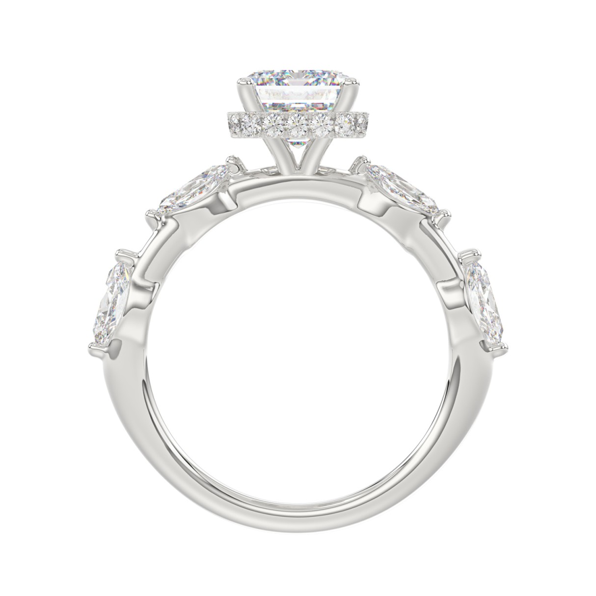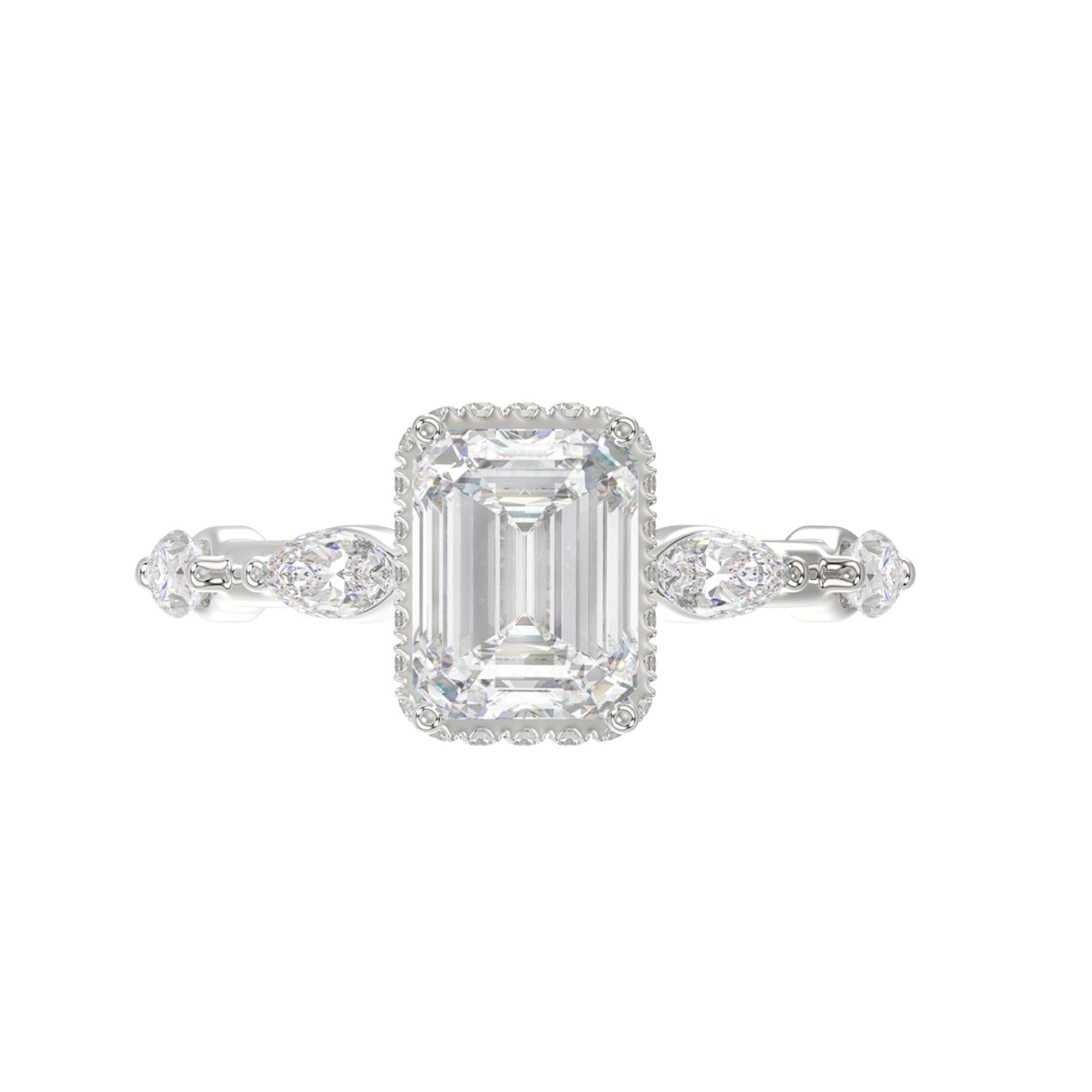LADIES RING 3.50CT ROUND/MARQUISE/EMERALD DIAMOND 14K WHITE GOLD (CENTER STONE EMERALD DIAMOND 3.00CT)