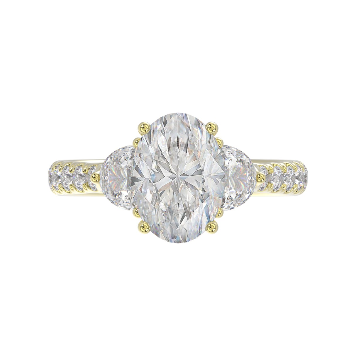 LADIES RING 3CT ROUND/OVAL/HALF MOON DIAMOND 14K YELLOW GOLD (CENTER STONE OVAL DIAMOND 2CT )