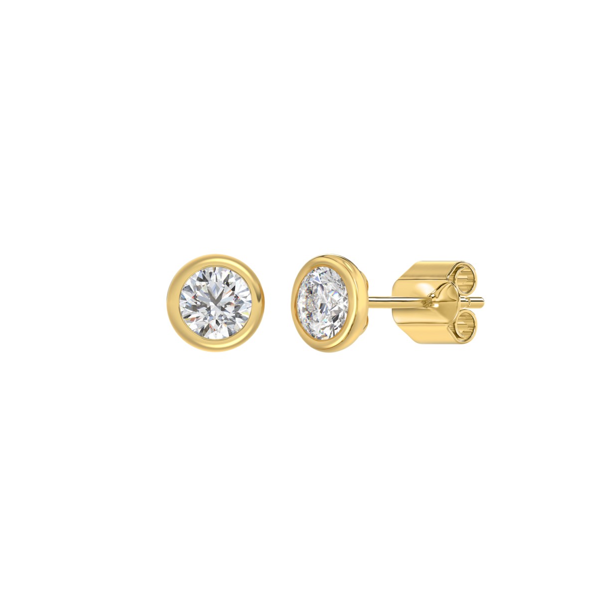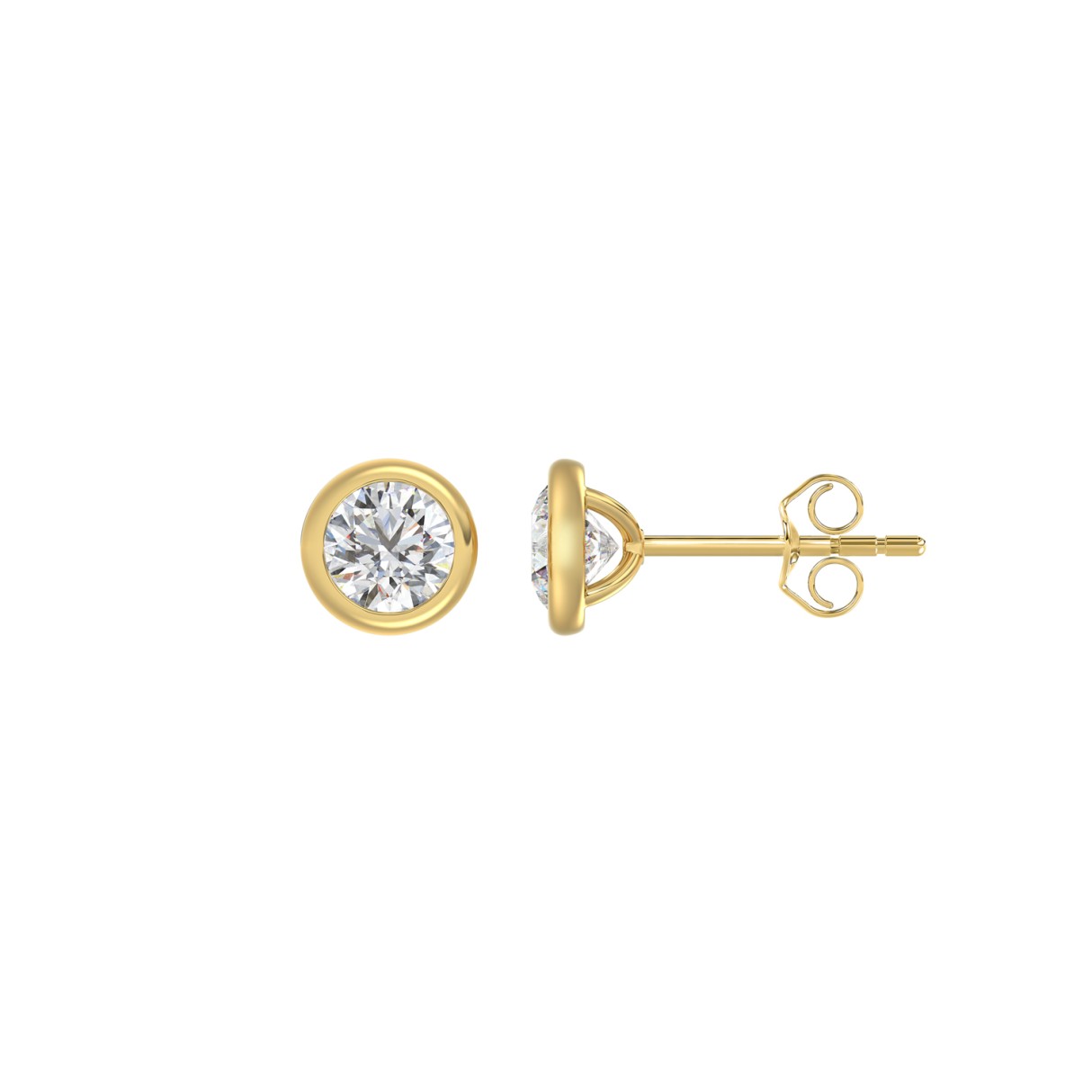 LADIES SOLITAIRE EARRINGS 1CT ROUND DIAMOND 14K YELLOW GOLD