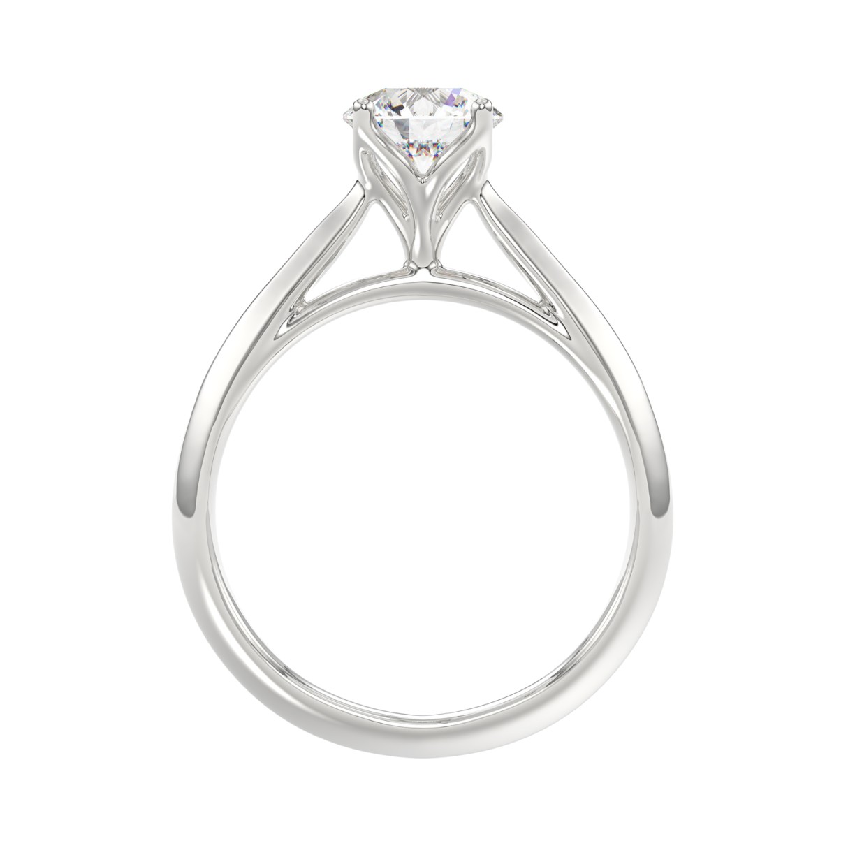 LADIES SOLITAIRE RING 1CT ROUND DIAMOND 14K WHITE GOLD